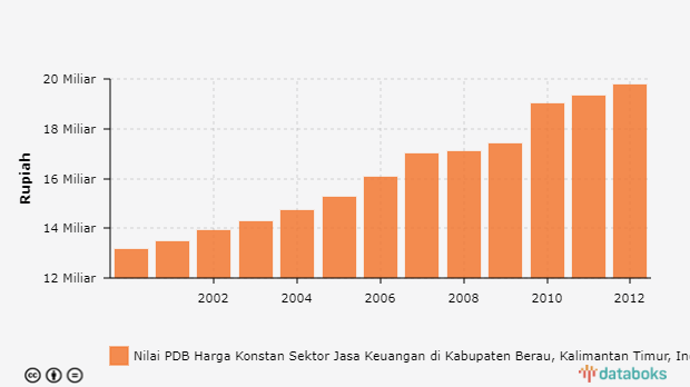 Nilai PDB Harga Konstan Sektor Jasa Keuangan di Kabupaten Berau, Kalimantan Timur 2000 - 2012 -