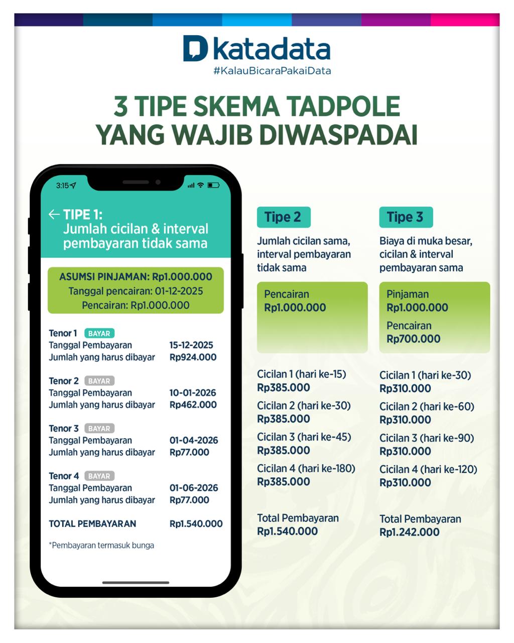 Praktik tadpole menjadi praktik yang bertentangan dengan pelindungan konsumen. Skema pembayaran cicilan yang besar di awal bertujuan mengalihkan risiko dari platform ke peminjam secara tidak seimbang.