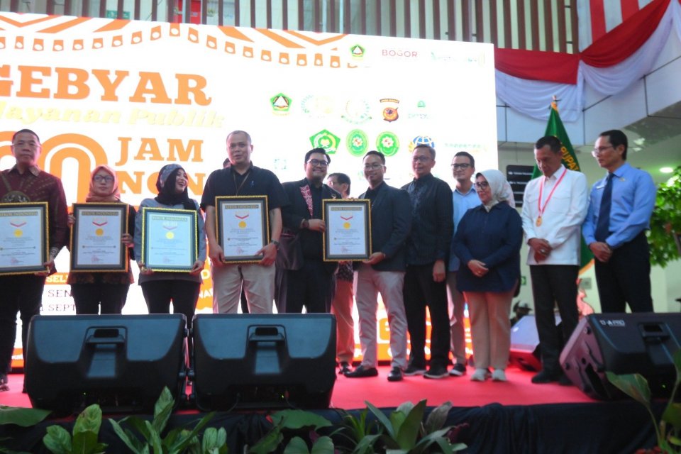 Rekor MURI ini dianugerahkan kepada MPP Kabupaten Bogor sebagai “Mal Pelayanan Publik dengan Layanan Operasional secara Nonstop Terlama”.