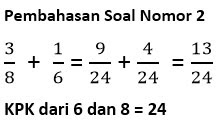 Hasil dari 3⁄8 + ⅙ adalah = ....