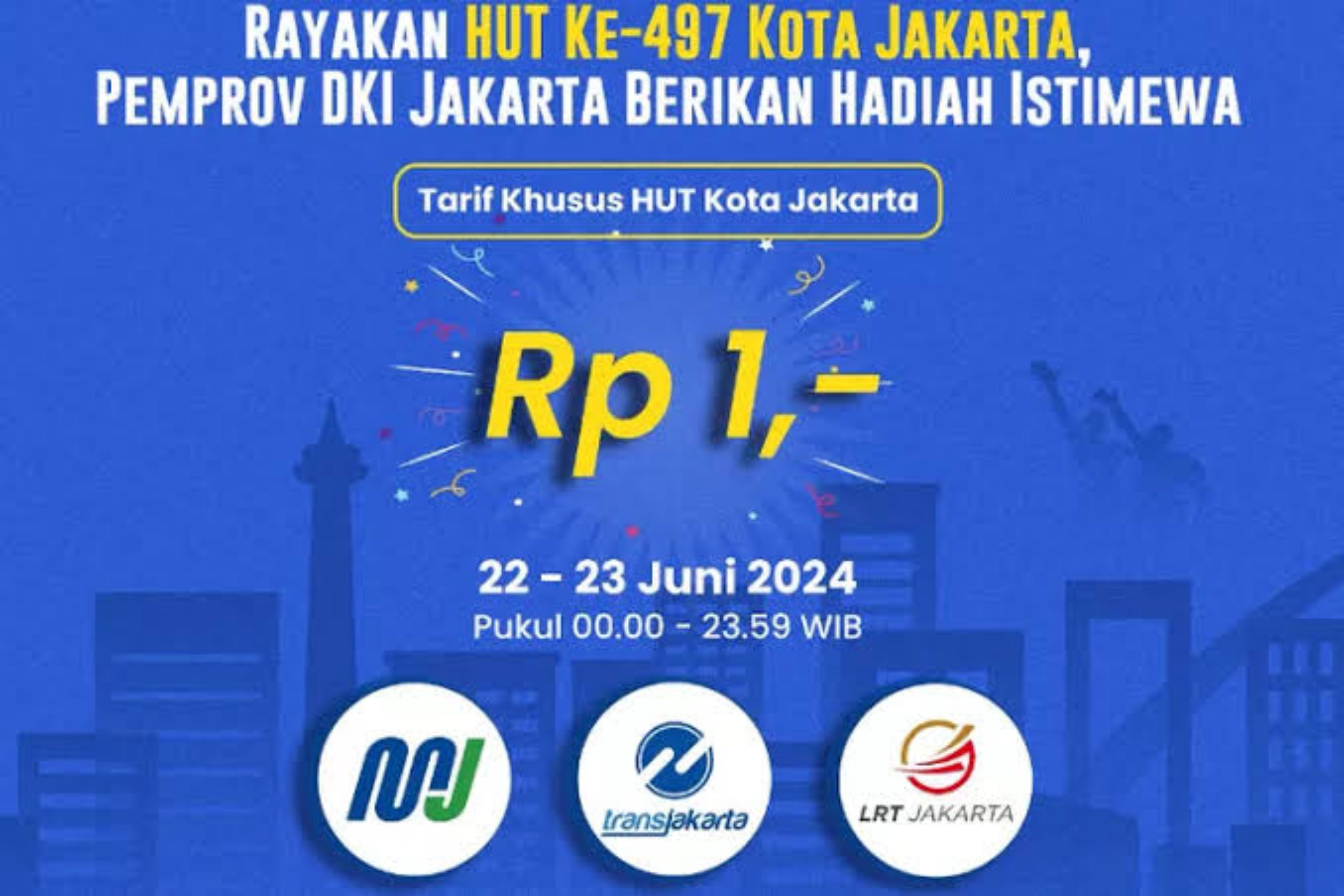 Promo HUT Bhayangkara ke-79 yang jatuh pada hari ini, Selasa, 1 Juli 2025, Pemerintah Provinsi DKI Jakarta memberikan promo tarif Rp 1 bagi sejumlah moda transportasi umum di Jakarta. Promo berlaku untuk layanan Transjakarta, MRT, serta LRT Jakarta (rute Velodrome–Pegangsaan Dua).