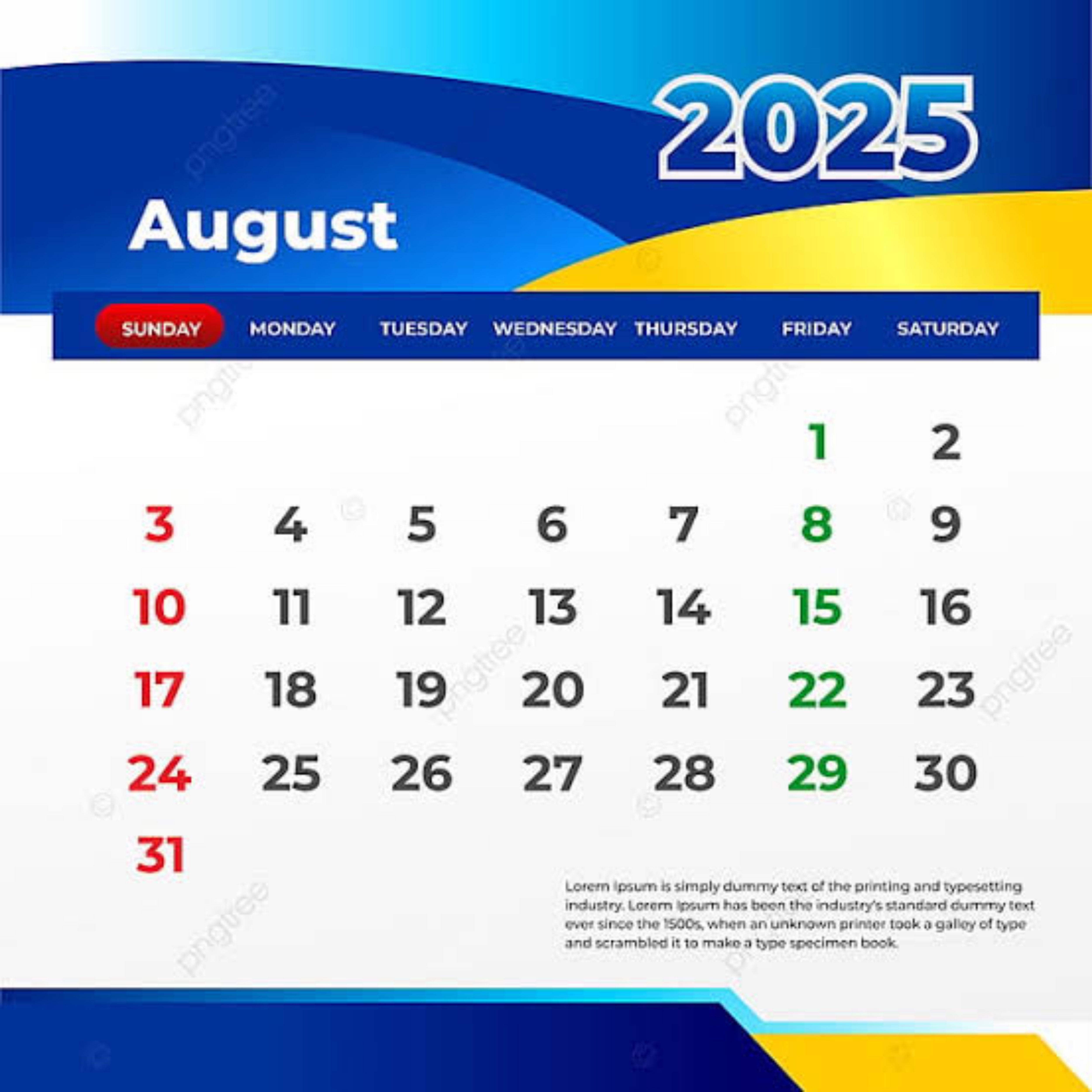 Memasuki bulan kemerdekaan, banyak masyarakat mulai mencari kalender bulan Agustus 2025 lengkap dengan tanggal merah dan hari besar. Berikut kalender Agustus 2025 Masehi: