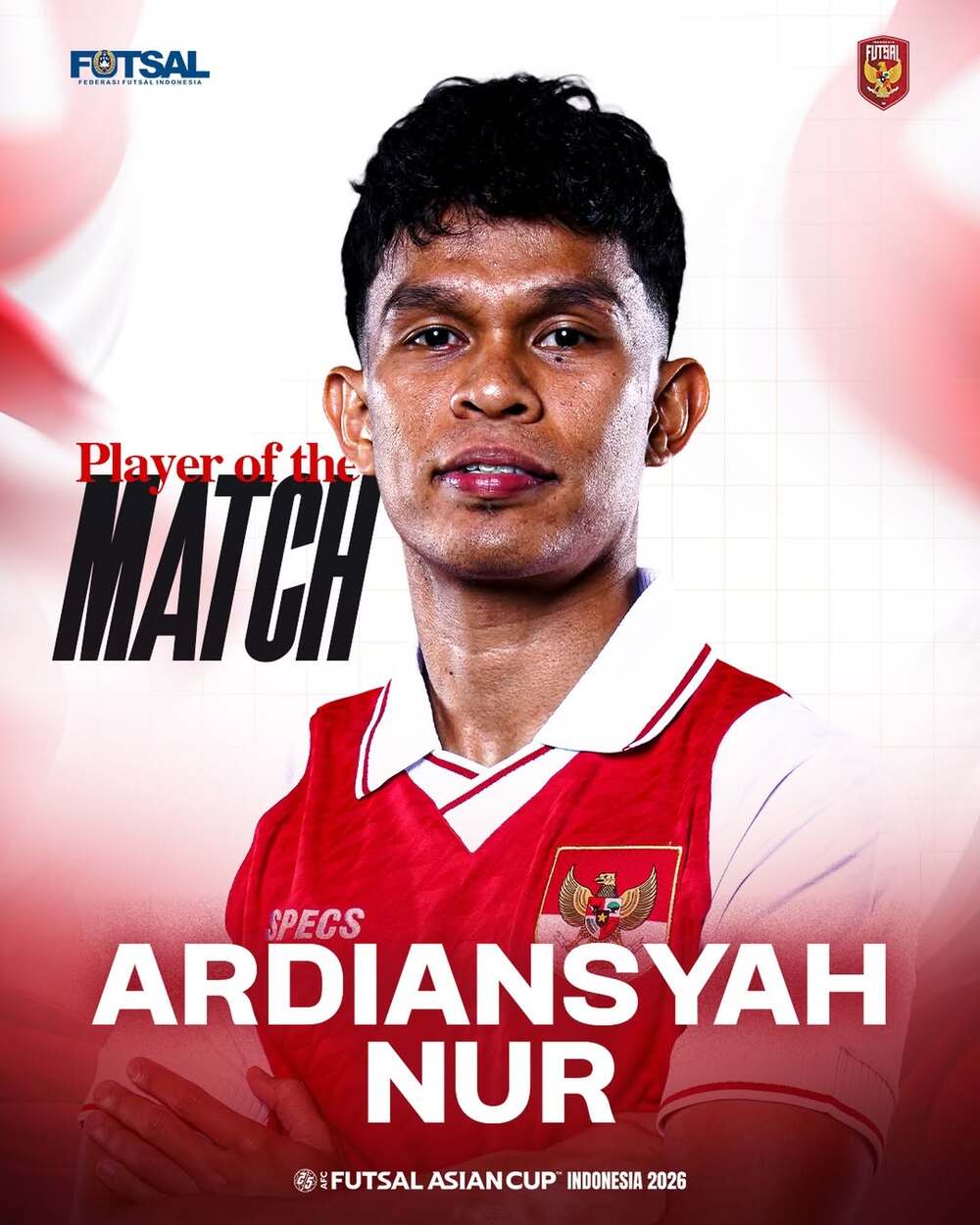 Salah satu sosok yang mencuri perhatian dalam kemenangan bersejarah ini adalah Ardiansyah Nur. Pemain yang memimpin permainan Timnas Futsal Indonesia tersebut tampil agresif sejak menit awal, membawa tim tampil menekan dan menjaga intensitas permainan hingga laga berakhir.