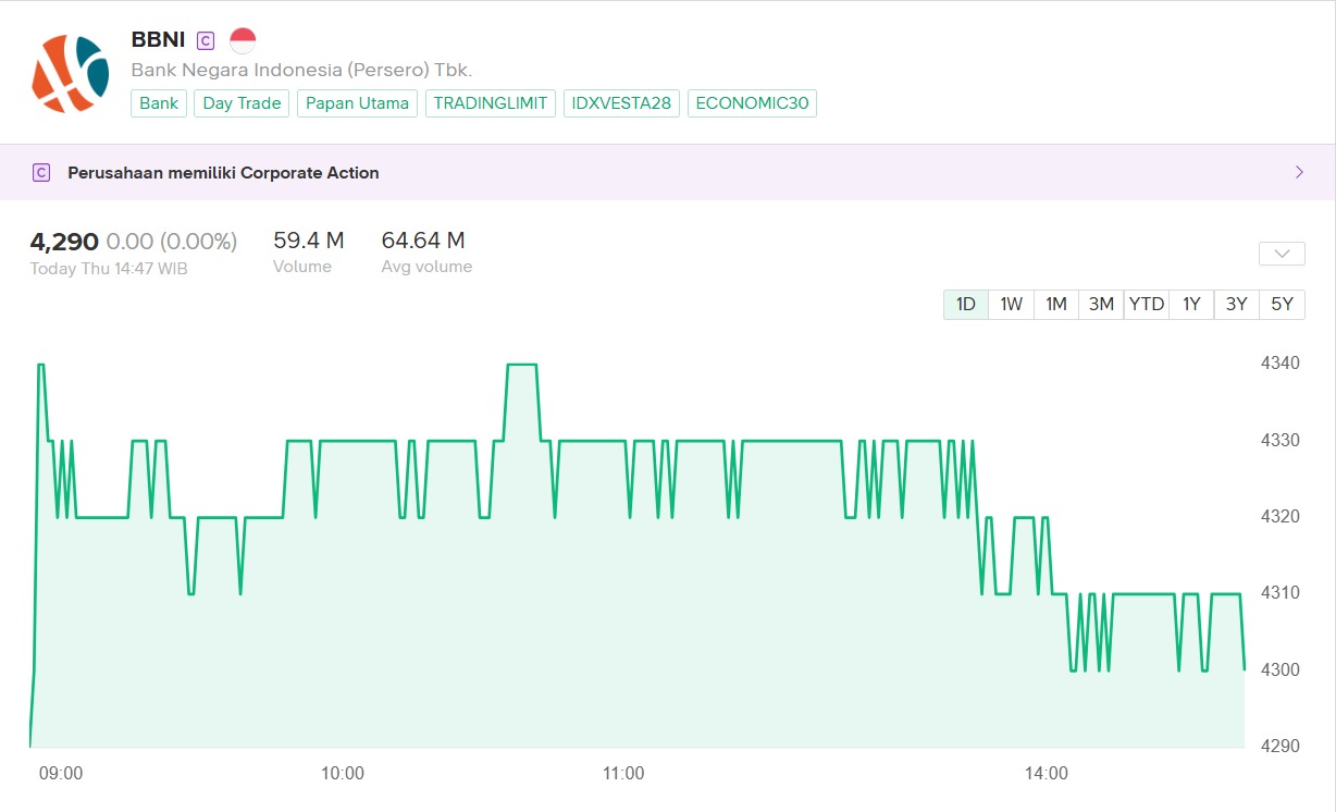 Otoritas pasar modal, Bursa Efek Indonesia (BEI) dan Kustodian Sentral Efek Indonesia (KSEI) merilis data struktur kepemilikan saham di atas 1 persen BBNI. BBNI merupakan kode saham dari PT Bank Negara Indonesia (Persero) Tbk, salah satu bank BUMN tertua di Indonesia.