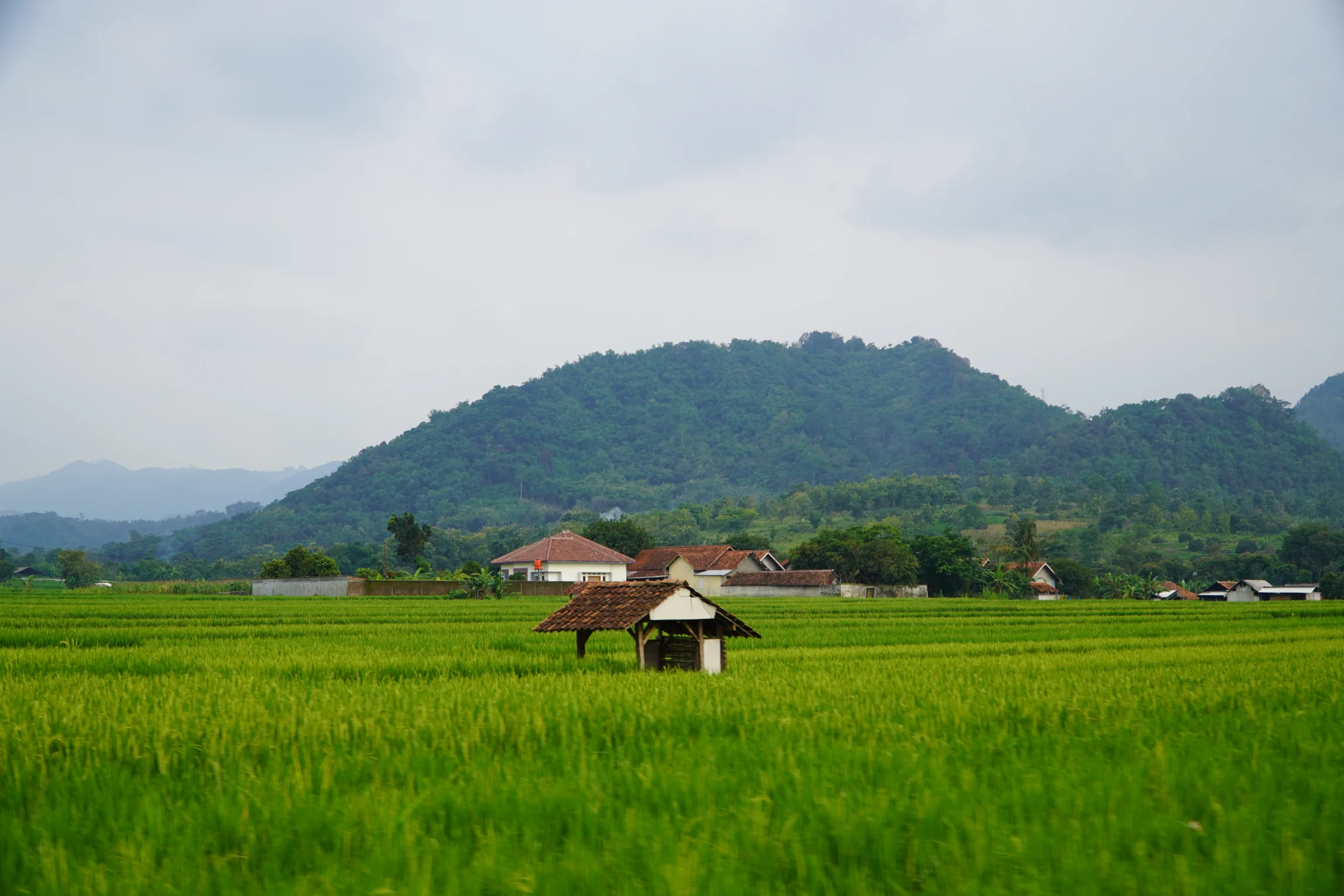 Hamparan sawah di kanan kiri jalan menuju Gunung Karang. (Fitria Nurhayati/Katadata)