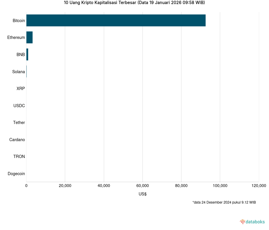 10 Uang Kripto Kapitalisasi Terbesar (Data 19 Februari 2026 09:32 WIB)