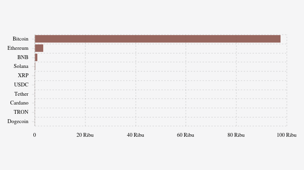 10 Uang Kripto Kapitalisasi Terbesar (Data 18 Februari 2026 09:32 WIB)