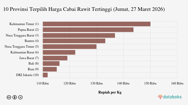 10 Provinsi dengan Harga Cabai Rawit Paling Mahal (Jumat, 27 Maret 2026)