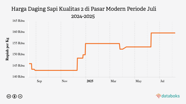 Harga Daging Sapi Kualitas 2 di Pasar Modern Periode Agustus 2024-2025
