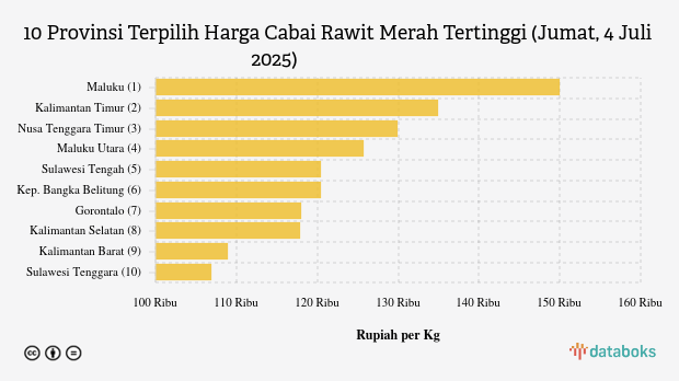 10 Provinsi Terpilih Harga Cabai Rawit Merah Tertinggi (Jumat, 4 Juli 2025)