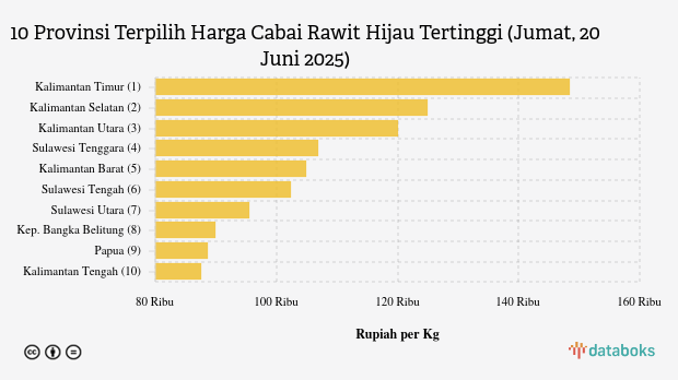 Harga Cabai Rawit Hijau di Kalimantan Timur Termahal Nasional (Jumat, 20 Juni 2025)