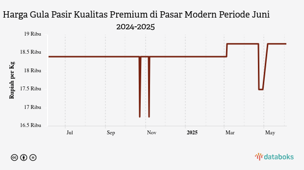Harga Gula Pasir Kualitas Premium di Pasar Modern Provinsi Nusa Tenggara Barat Sebulan Terakhir Masih di Harga Rp18,75 Ribu per Kg