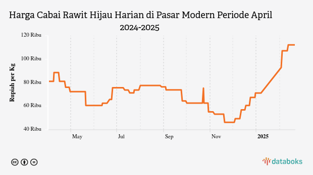 Harga Cabai Rawit Hijau di Pasar Modern Periode Maret 2025-2026
