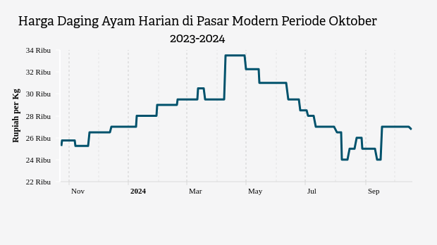 Harga Daging Ayam Harian di Pasar Modern Provinsi Sulawesi Barat Sebulan Terakhir Naik 7%