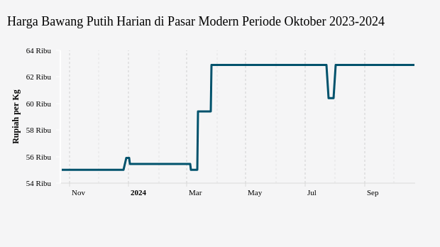 Harga Bawang Putih Harian di Pasar Modern Provinsi Maluku Sebulan Terakhir tidak Berubah