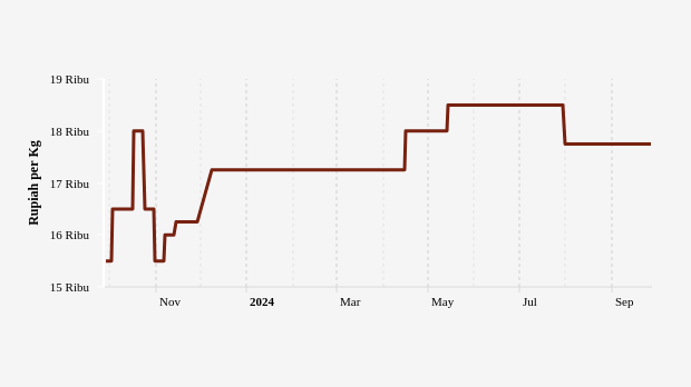 Harga Gula Pasir Lokal Harian di Pasar Modern Provinsi Riau Sebulan Terakhir tidak Berubah