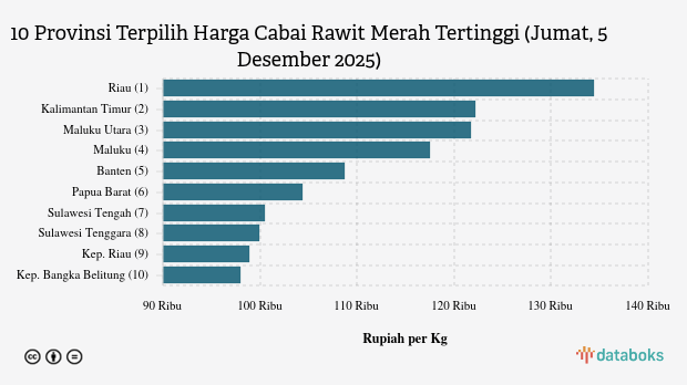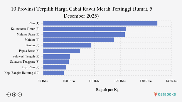 Harga Cabai Rawit Merah di Riau Termahal Se-Indonesia (Jumat, 5 Desember 2025)