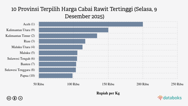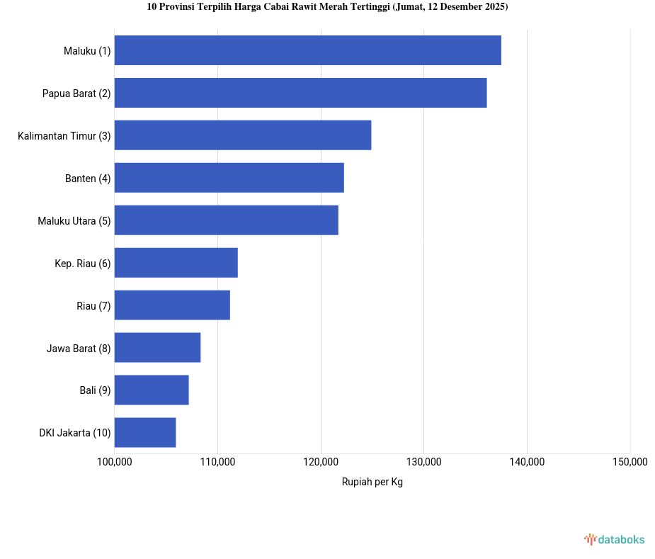 10 Provinsi Terpilih Harga Cabai Rawit Merah Tertinggi (Jumat, 12 Desember 2025)