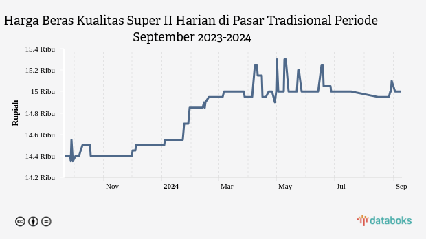 Harga Beras Kualitas Medium II Harian di Pasar Modern Provinsi Bali Sebulan Terakhir Masih di Harga Rp15,3 Ribu per Kg