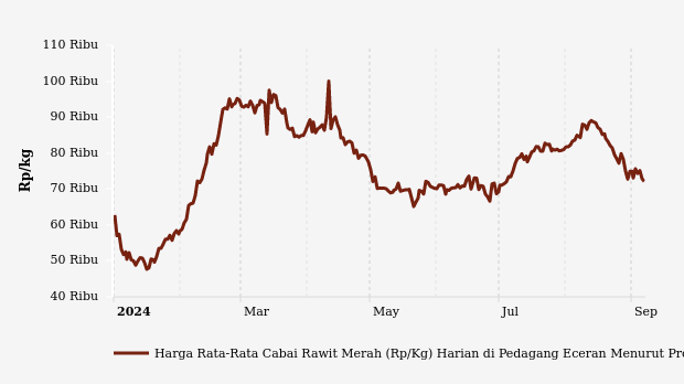 Harga Cabai Rawit Merah Harian di Pasar Modern Provinsi Gorontalo Sebulan Terakhir Turun 8,5%