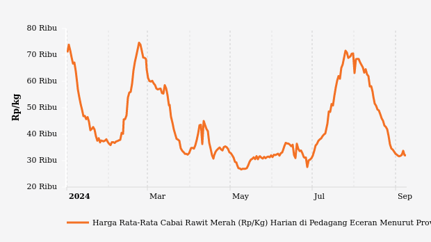 Harga Cabai Rawit di Jawa Tengah Sebulan Terakhir Turun 50,39%