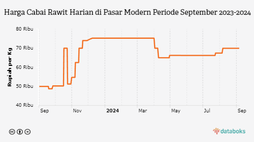 Harga Cabai Rawit Harian di Pasar Modern Provinsi Nusa Tenggara Barat Sebulan Terakhir Naik 3,71%