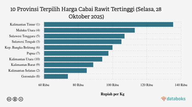 Harga Cabai Rawit di Kalimantan Timur Termahal Nasional (Selasa, 28 Oktober 2025)