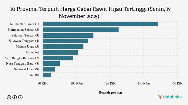 Harga Cabai Rawit Hijau di Kalimantan Timur Termahal Nasional (Senin, 17 November 2025)