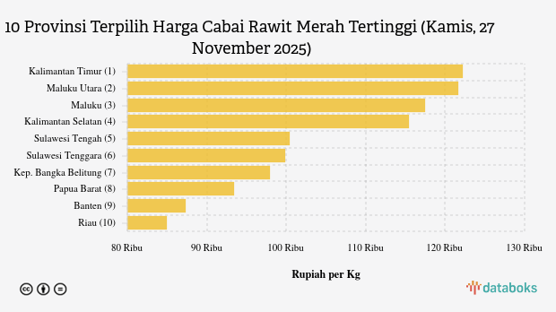 Harga Cabai Rawit Merah di Kalimantan Timur Rp.122,2 Ribu per Kg (Kamis, 27 November 2025)