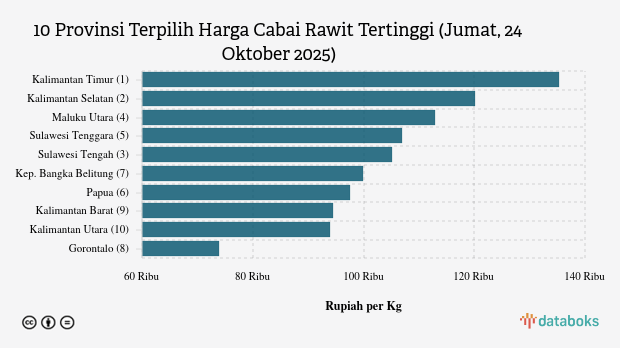 Harga Cabai Rawit di 10 Provinsi Ini Paling Mahal (Jumat, 24 Oktober 2025)