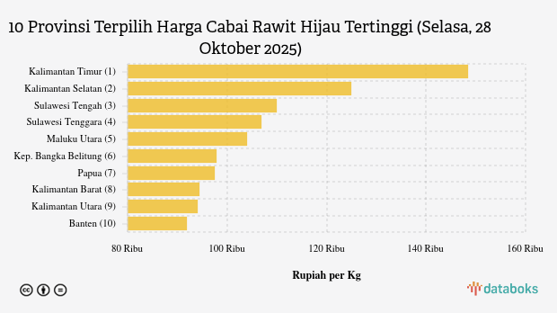 10 Provinsi dengan Harga Cabai Rawit Hijau Paling Mahal (Selasa, 28 Oktober 2025)