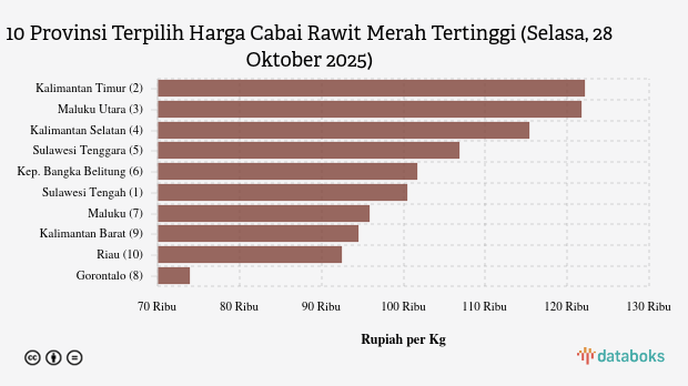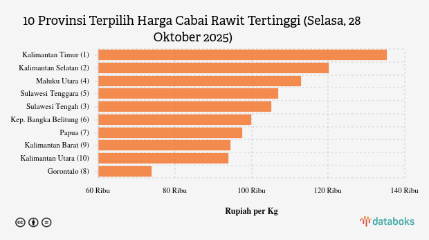 Harga Cabai Rawit di 10 Provinsi Ini Paling Mahal (Selasa, 28 Oktober 2025)