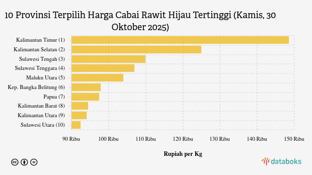 10 Provinsi dengan Harga Cabai Rawit Hijau Paling Mahal (Kamis, 30 Oktober 2025)