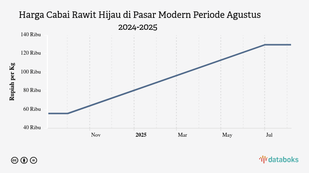 Harga Cabai Rawit Hijau di Pasar Modern Provinsi Nusa Tenggara Timur Sebulan Terakhir Naik 132,38%