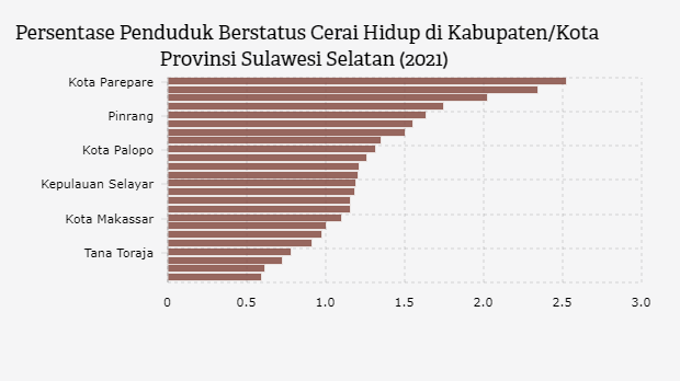 Penduduk Cerai Hidup di Kota Parepare Tertinggi se-Sulawesi Selatan pada 2021