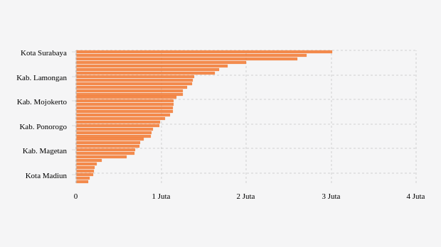 Ini Wilayah dengan Penduduk Terbanyak di Jawa Timur pada Desember 2023