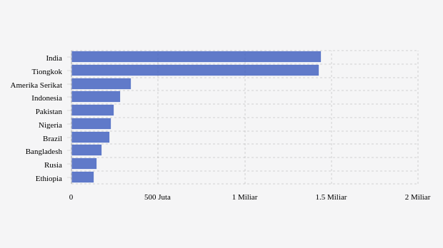 10 Negara dengan Jumlah Penduduk Terbanyak di Dunia Maret 2024