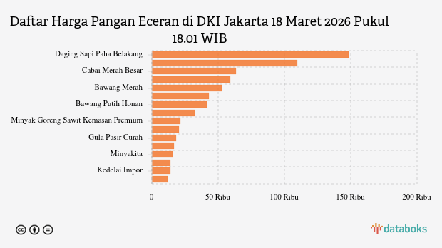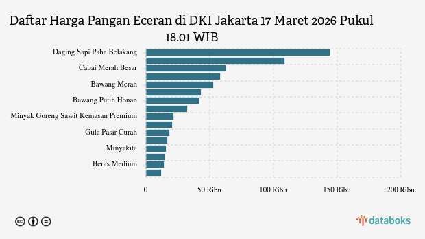 Harga Pangan Hari Ini (17/3) di DKI Jakarta: Cabai Merah Naik, Daging Sapi Turun