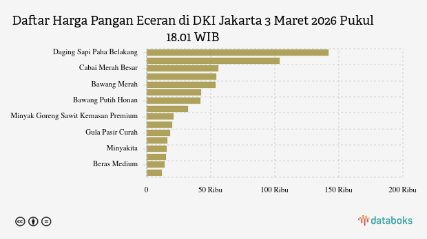 Harga Pangan Hari Ini 03 Maret di DKI Jakarta: Cabai Merah Naik, Daging Sapi Turun