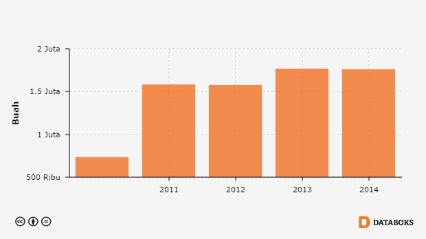 Jumlah Penerbitan Surat Kendaraan Bermotor Jenis STNK Baru di Indonesia 2010 - 2014