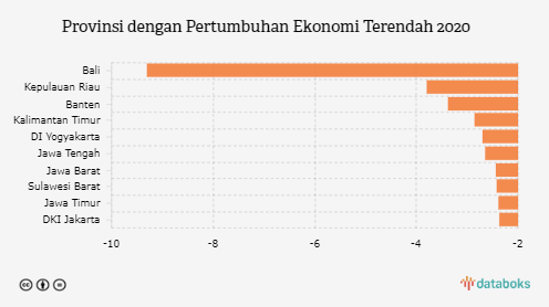 10 Provinsi dengan Pertumbuhan Ekonomi Terendah 2020