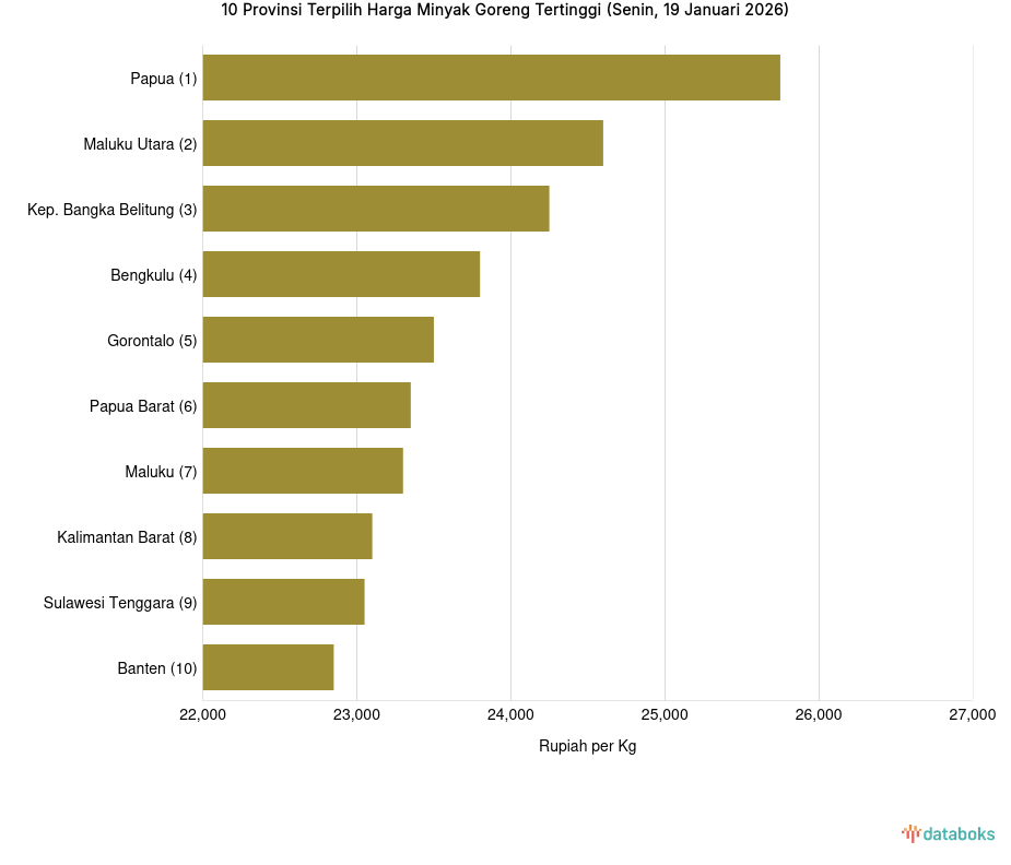 10 Provinsi dengan Harga Minyak Goreng Kemasan Bermerk 2 Paling Mahal (Selasa, 20 Januari 2026)