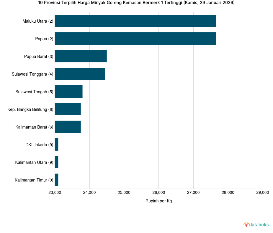 Harga Minyak Goreng Kemasan Bermerk 1 di Maluku Utara Rp.27.650 per Kg (Senin, 26 Januari 2026)