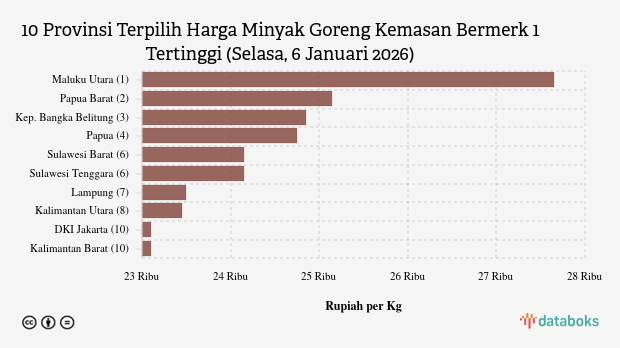 10 Provinsi dengan Harga Minyak Goreng Paling Mahal (Jumat, 9 Januari 2026)