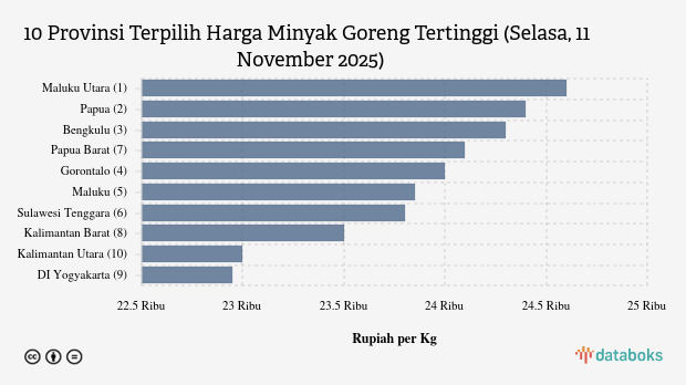 Harga Minyak Goreng di Maluku Utara Paling Mahal di Indonesia (Jumat, 21 November 2025)