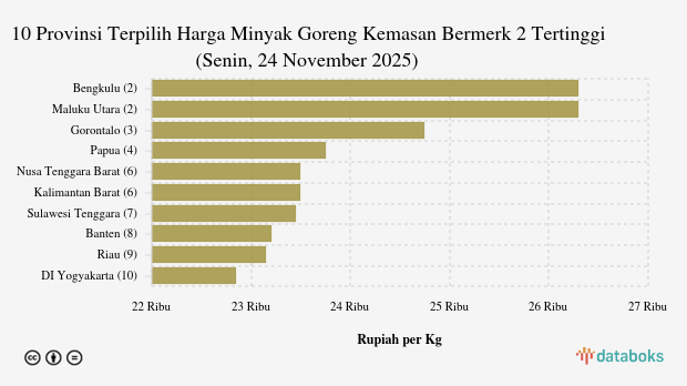 Harga Minyak Goreng Kemasan Bermerk 2 di Bengkulu Paling Mahal di Indonesia (Senin, 24 November 2025)