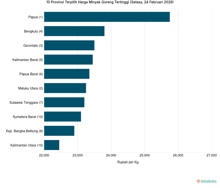 10 Provinsi Terpilih Harga Minyak Goreng Tertinggi (Selasa, 10 Maret 2026)