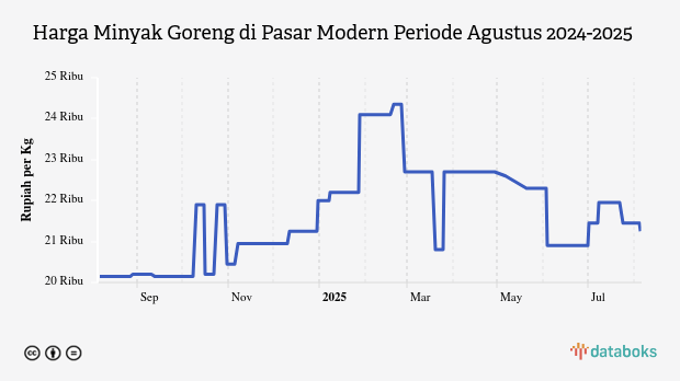 Harga Minyak Goreng Kemasan Bermerk 1 di Pasar Modern Periode Agustus 2024-2025