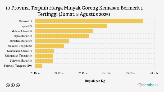 Harga Minyak Goreng Kemasan Bermerk 1 di Maluku Termahal Se-Indonesia (Jumat, 8 Agustus 2025)