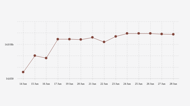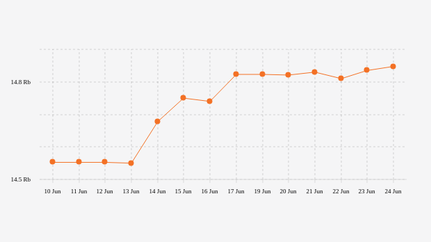 Kurs Rupiah Melemah 0,1% atau 11 Poin terhadap Dolar AS (Rabu, 29 Juni 2022)